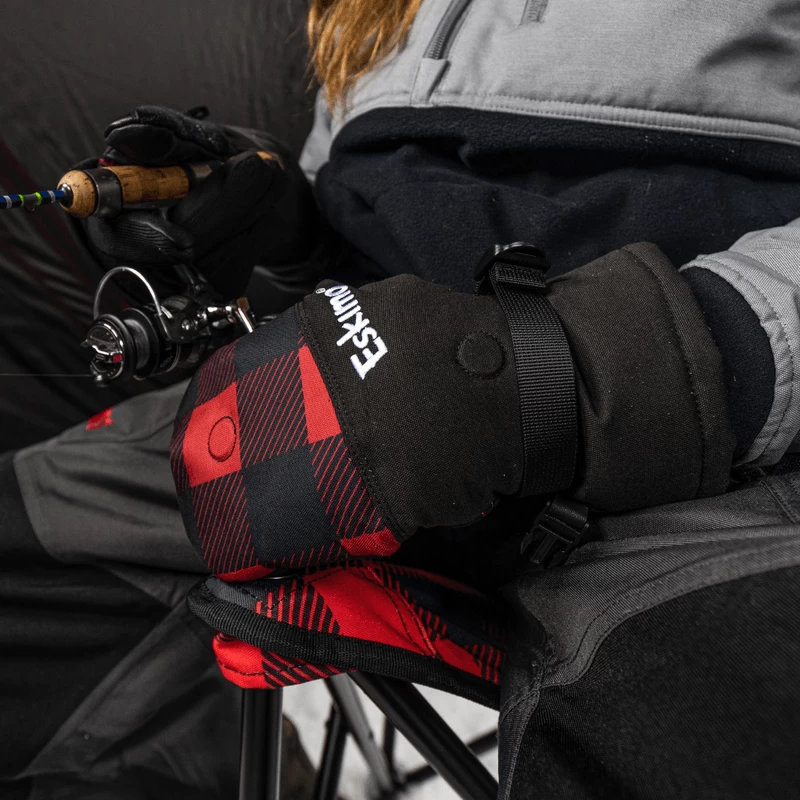 The Eskimo Buffalo Plaid Glomitt is a 2-in-1 system that offers the full dexterity of a waterproof next to skin glove paired with the warmth and protection of a mitt. The mitt features 120gm of 3M Thinsulate Platinum insulation to offer added warmth as well as goatskin palm and thumb reinforcements designed for ice fishing.