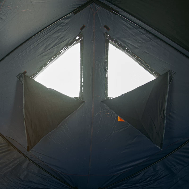 In this spacious Eskimo Shelter, you’ll get more fishable space than any comparable shelter on the market! It was engineered to ensure every inch of possible space is available to you, thanks to vertical wall design! Setup is a snap too, with convenient “hub” design that pops up in a minute!