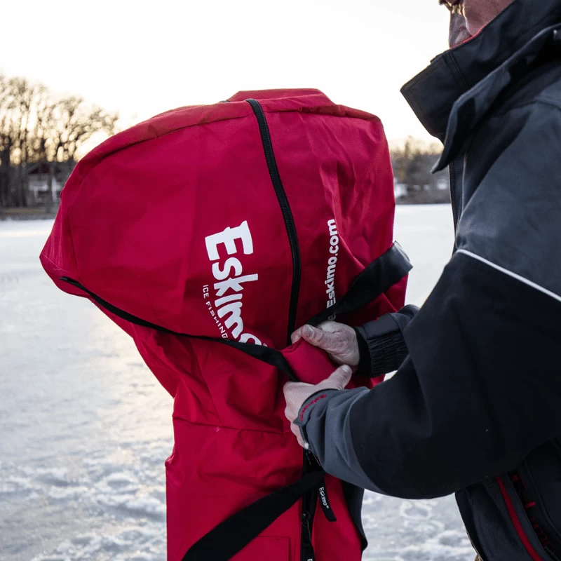 The Eskimo power auger bag is the perfect carrying case for transporting your ice auger. The bag is made from the same durable material as Eskimo ice shelters, and with its reinforced inner shell, this bag is the ultimate protection for your power ice auger. Eliminate worries of fuel spills or leaks that can damage your vehicle, and use the storage pockets as a handy spot to keep extra tools or oil you may need while ice fishing.
