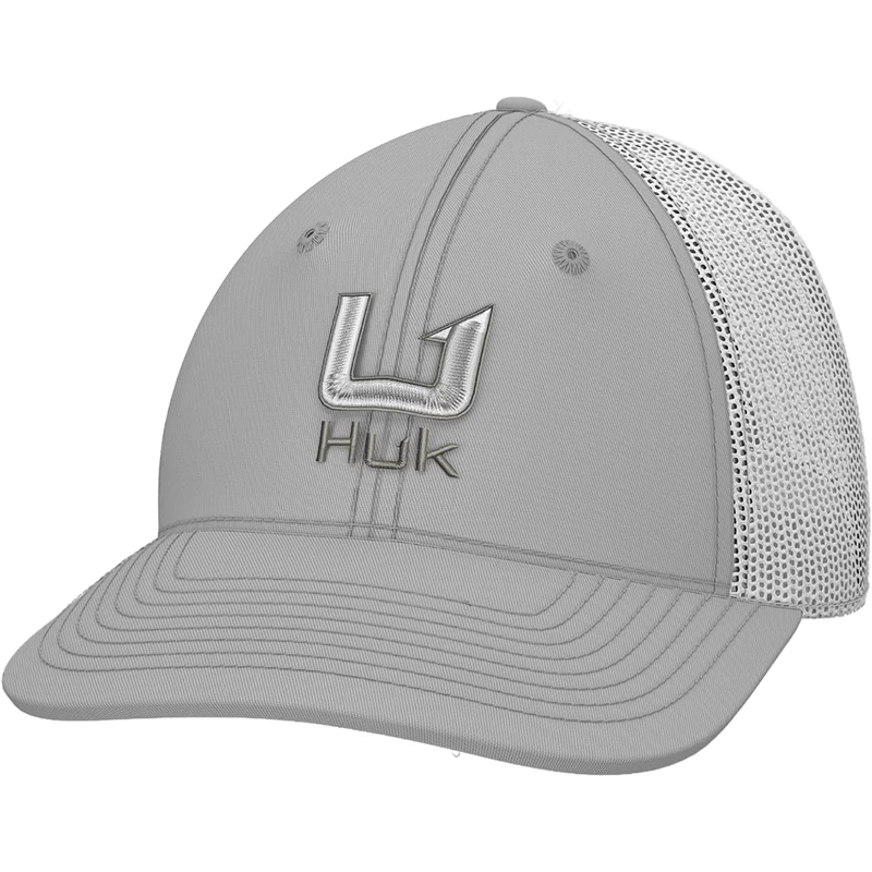 This mid-profile trucker features a 3D embroidery Huk logo on fabric patch. It features a dark gray under visor to fight glare and a comfortable moisture-wicking sweatband.