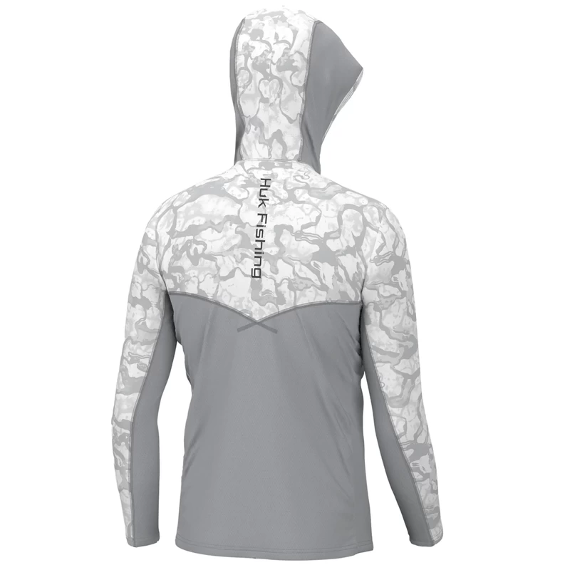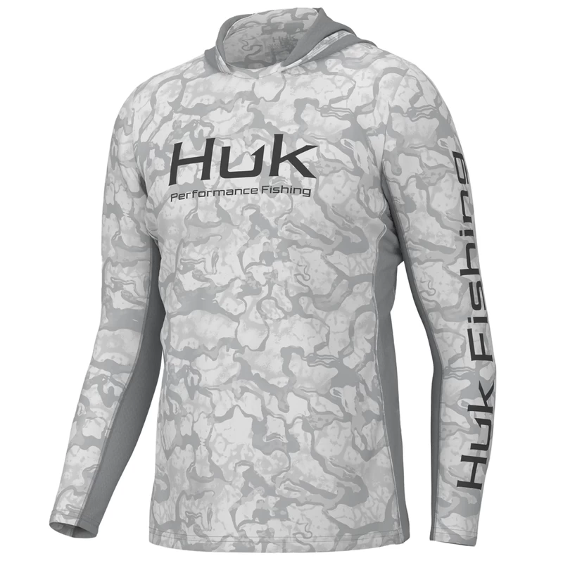 The Huk ICON X Hoodie is the most technically advanced performance fishing shirt designed for hardcore anglers. This breathable material spreads moisture over a larger surface area, creating a rapid drying effect that cools the body after coming into contact with perspiration. The synthetic fibers allow air to pass through the shirt and contain a hydrophobic coating that transports sweat to drier areas, away from the skin.
