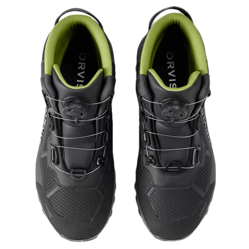 A perfect fit means more miles in comfort, and covering water is what the PRO BOA Wading Boot’s all about. Featuring the BOA Fit System this is, by far, the most advanced wading boot ever. The PRO Wading Boot was an industry-first collaborative effort with Michelin®, built on an outsole compound specifically designed for fly fishing. This revolutionary new sole design is an industry-disrupting advance in wet rubber traction. The Michelin Outdoor Extreme outsole offers 25% better abrasion resistance and a resounding 43% improvement in wet rubber traction over the competition. Using Michelin tire geometry, it offers a wider footprint for stability, a higher ratio of surface contact, and a lug pattern that reduces shock and improves pressure distribution. The two-layer midsole has a co-molded ESS plate that provides improved stud retention and torsional stability. Orvis partnered with OrthoLite® to create a 3D molded X25 insole designed for high-impact sports, delivering maximum comfort and arch support. An industry-first cast PU upper eliminates seams while providing a zoned cage for added stability, grip, and extreme abrasion resistance without the added bulk. The boot is higher cut for ankle support and lined with closed-cell foam. Scratch rubber at the toe cap and heel for abrasion resistance, an oversized heel pull for easier on-and-off, and tightly woven laces reduce broken laces.