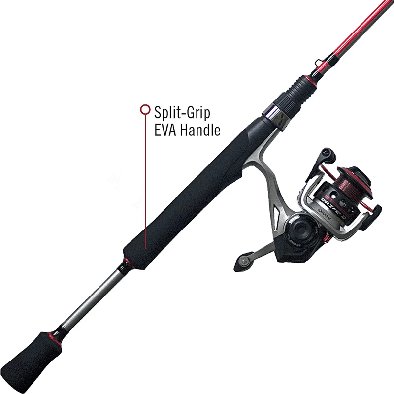- ALL-DAY COMFORT: The Quantum Drive fishing combo was engineered with a durable IM7 graphite fishing pole and a split-grip EVA rod handle for all-day comfort on the water. The spinning rod is outfitted with a built-in hook keeper, 6 D-ring guides + Tip, a stainless steel cushioned hood reel seat, and is designed to hold a 6-12-pound line weight and 1/4-5/8 oz lure weights