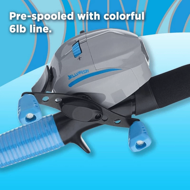 The Shakespeare Jellyfish combos are designed for ultimate comfort with unique Gel-Tech grips that squish and mold to your hands! Offered in both spincast and spinning options as well as two fun colors, there’s a Jellyfish combo for everyone! Â
