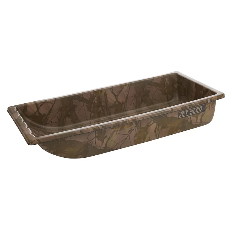 With its molded runners, the Shappell Camo Jet Sled is great for towing, dragging or floating heavy, cumbersome loads over muddy fields, ice, water or other kinds of terrain. Made of rugged polyethylene for long-lasting use.
