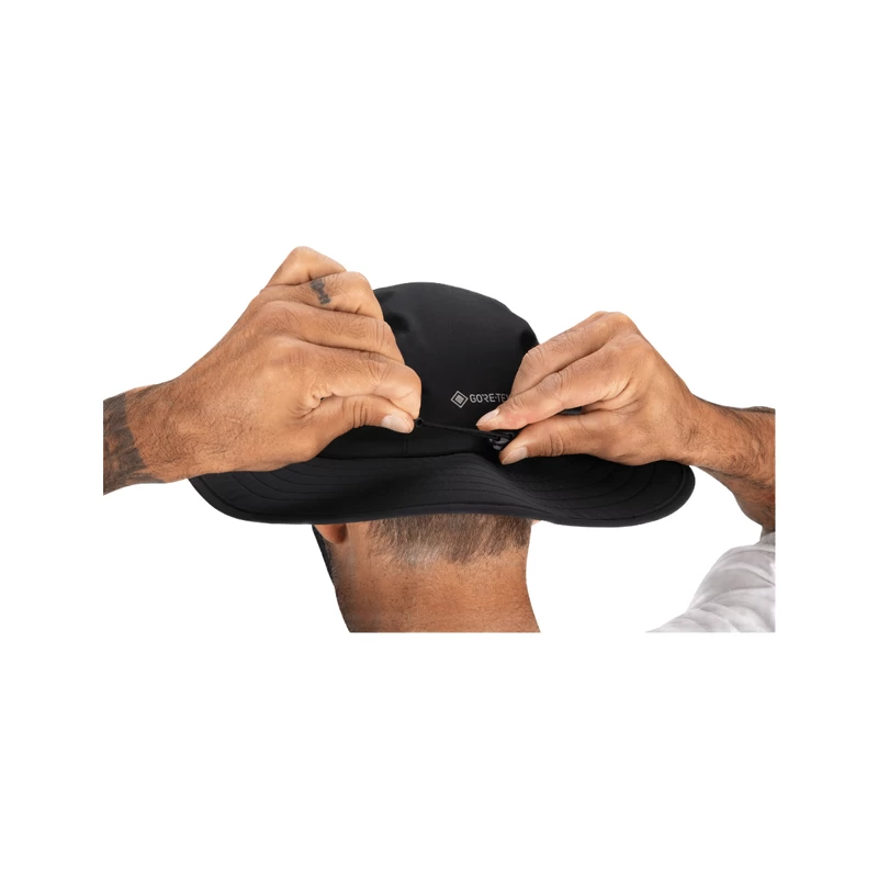 Full-brim, sombrero style cap for protection from downpours and adjustable cordlock cinch increasing security and stability even in stormy weather.